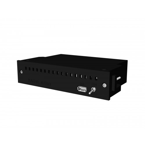 The enclosure provides a cooling fan, power switch, connectors, power cord and 2 USB power modules. One module powers the Raspberry Pi while the second module provides a front panel 3A charging port for any mobile device.